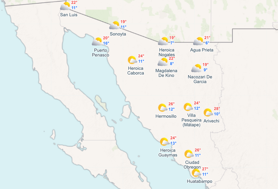 Pronóstico del clima para este Lunes 23 de Febrero en Sonora
