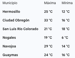 Pronóstico del clima para este Lunes 16 de Febrero en Sonora